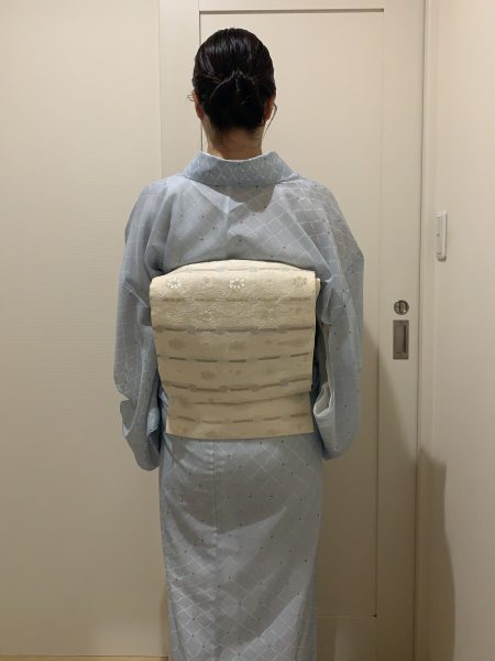 あとは貝の口系の帯結びがシンプルですね。やの字に結んでいます。