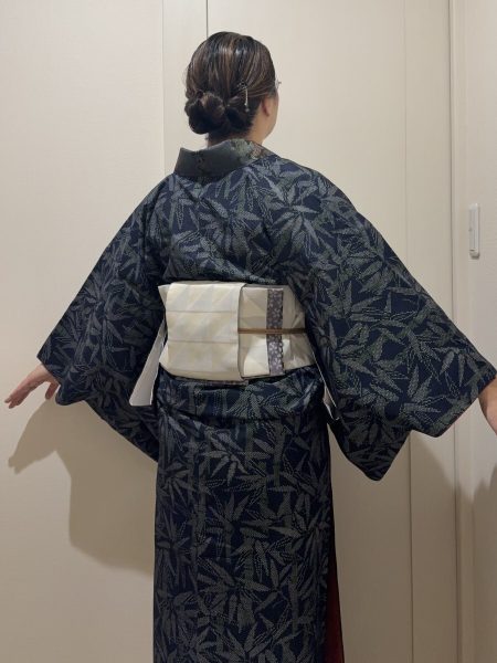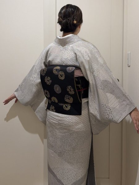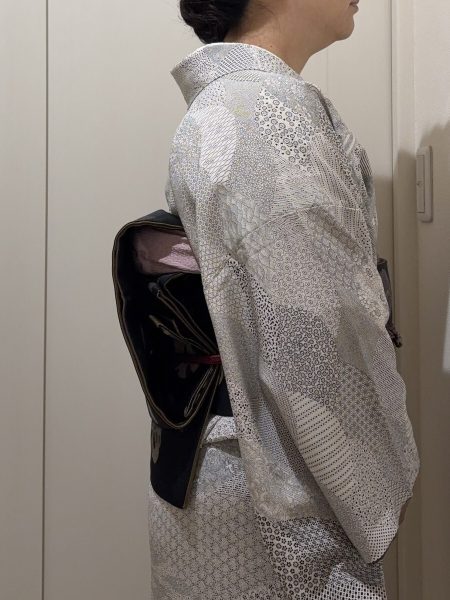 帯は二重太鼓で、帯枕は観劇枕使用でございます。